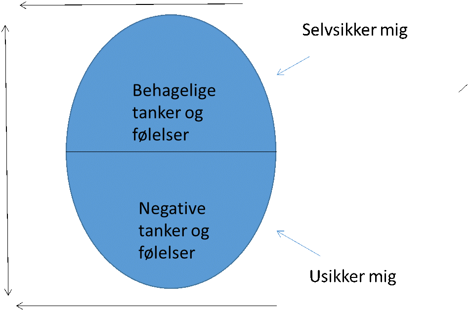 OBS: Det er vigtigt at vide ens selvbillede indeholder mere end 2 sider. Modellen jeg har udarbejdet, ligger op til at arbejde med to modsatte sider adgangen. I starten brugte, jeg meget energi på at bekrige min "usikkerside" i stedet for at acceptere den og dets skjultes hensigter og egenskaber.
